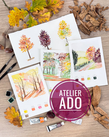 Atelier de 2h spécial ado de 12 à 15 ans : paysage d'automne. L'approche est simplifiée et se fait par étape. Cet atelier convient tout à fait à des débutants ou niveau intermédiaire.